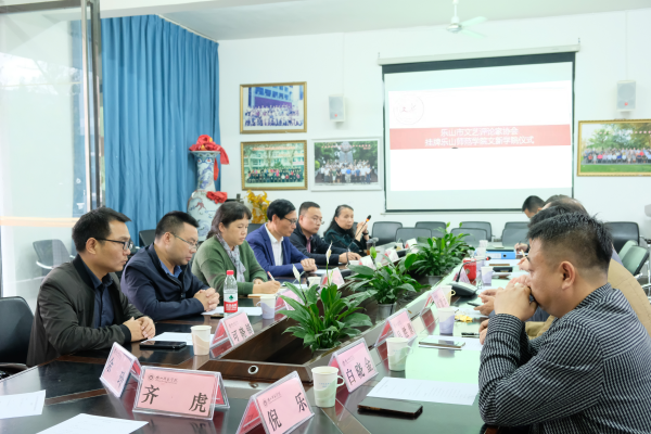 本网讯(文、图/蔡燕)11月2日,乐山市文艺评论家协会挂牌文新学院的仪式在文新会议室进行。乐山市文联主席罗国雄、乐山市文艺评论家协会主席李康云亲临现场。文新学院党委书记彭杨,党委副书记、院长刘传启,党委副书记、纪委书记胡平建,副院长杨晓军,院长助理可晓锋,乐山市文艺评论家协会副主席张德军、吴胜景出席本次挂牌仪式。文新学院部分会员教师参与。会议由乐山市文艺评论家协会秘书长周松鋮主持。