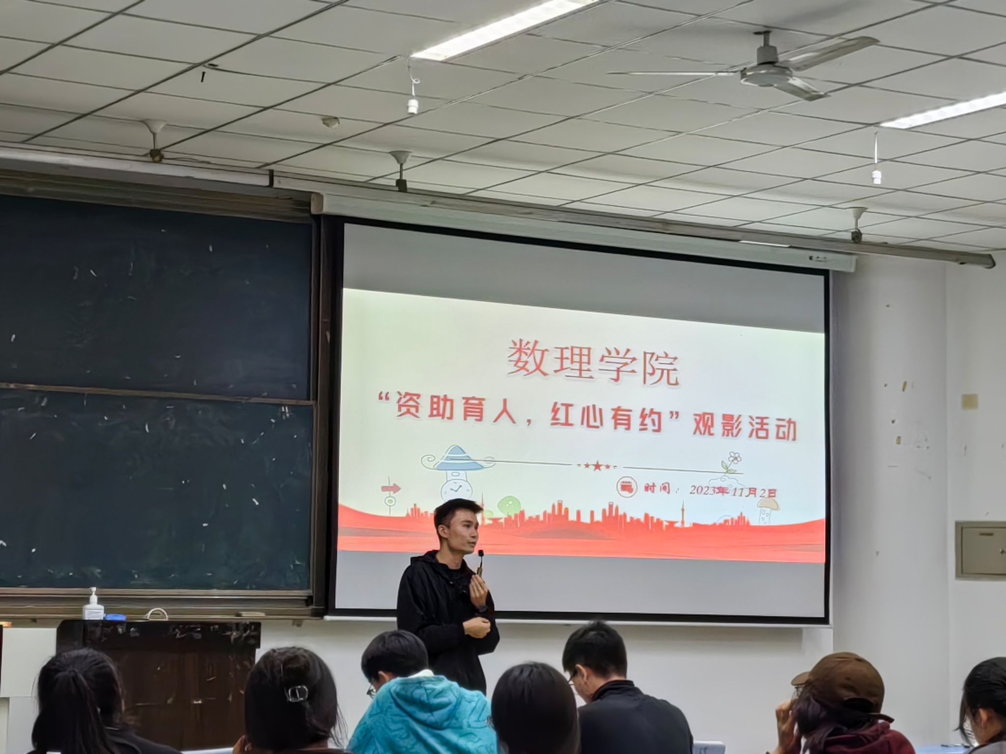 本网讯(文/林思婷 图/刘兴会、李秦)为进一步加强对学生的励志感恩教育,营造良好的资助育人氛围,11月2日晚七点,数理学院在行知楼214教室开展了资助育人“红心有约”观影活动。2020级辅导员廖宇以及150余名家庭经济困难学生共同观看了电影《八角笼中》。