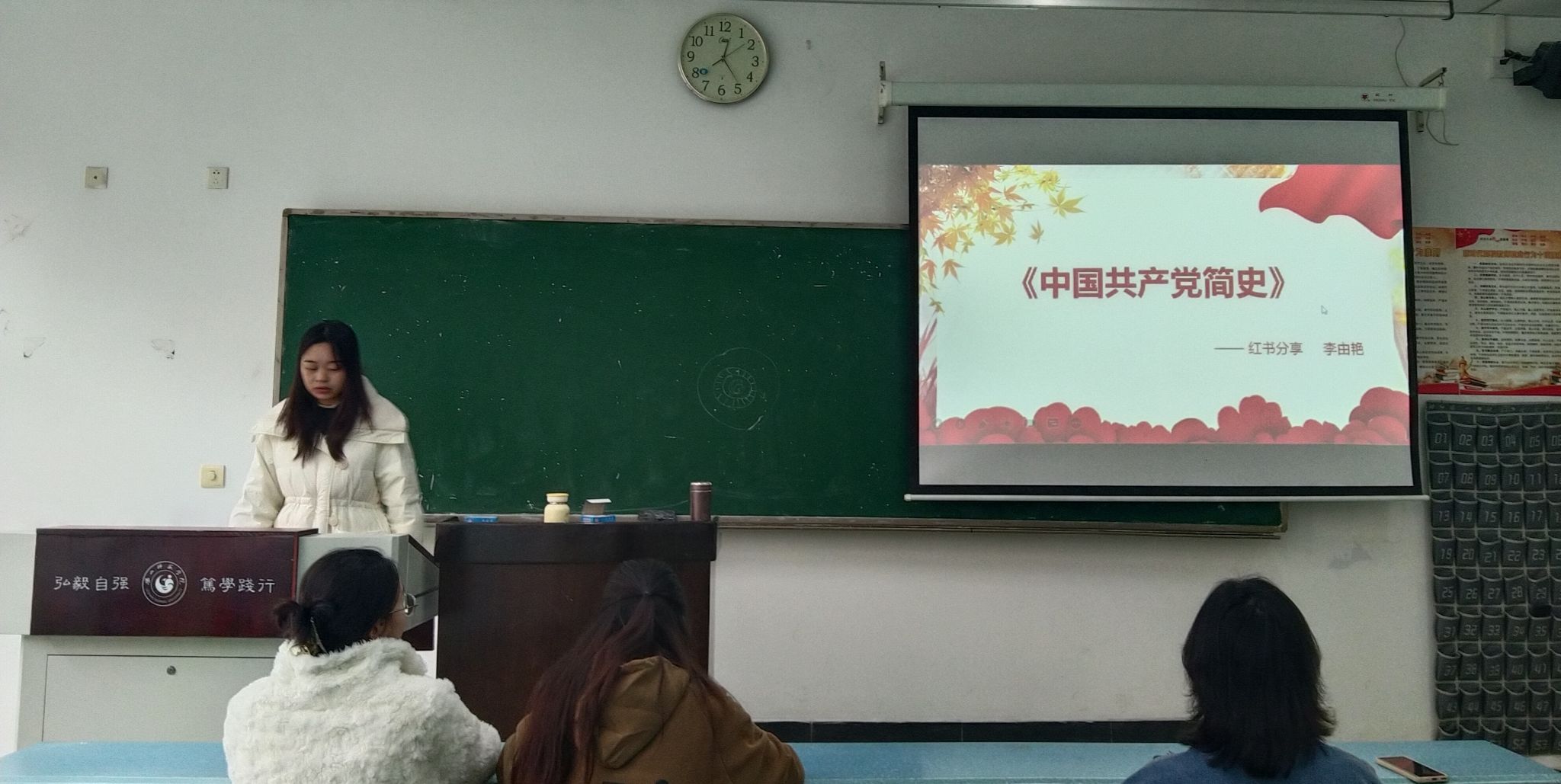 本次活动内容为5名发展对象分享红色经典书籍。杨晨曦同学介绍《林海雪原》充分体现出了战士们发挥了大智大勇,激励我们不畏生活中的艰难险阻,勇往向前。牛嘉欣同学介绍了《苦难辉煌》,激励着大家肩负起新时代青年的使命与担当,为民族为人类做贡献。金燕同学介绍《谁是最可爱的人》,激发出大家心中浓浓的爱国情与深深的为国奋斗意。赵明月同学介绍《长征》,展现了中国共产党的伟大精神和中国人民的奋斗精神,激励更多的人为实现国家繁荣和人民幸福而努力奋斗!李由艳介绍了《中国共产党简史》,点出了该书特点鲜明,它坚持大历史观和正确党史观,集中彰显了党在各个历史时期锻造的伟大精神。