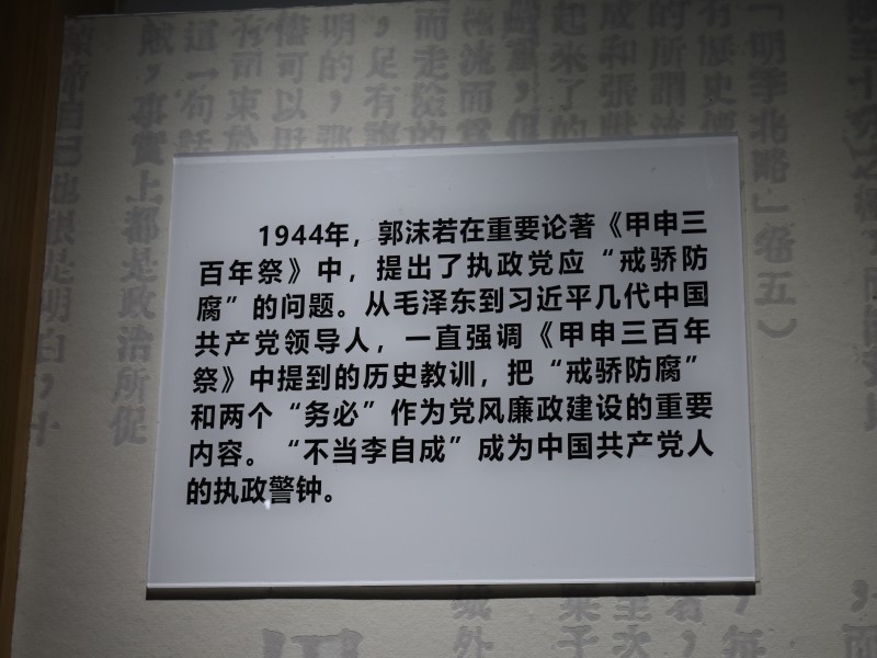 跟随讲解员,同志们走进郭沫若诞生和少年时代生活、学习的地方,探寻文学风韵,感悟革命和廉洁精神,尤其就郭沫若的《甲申三百年祭》一文再次进行深入学习。