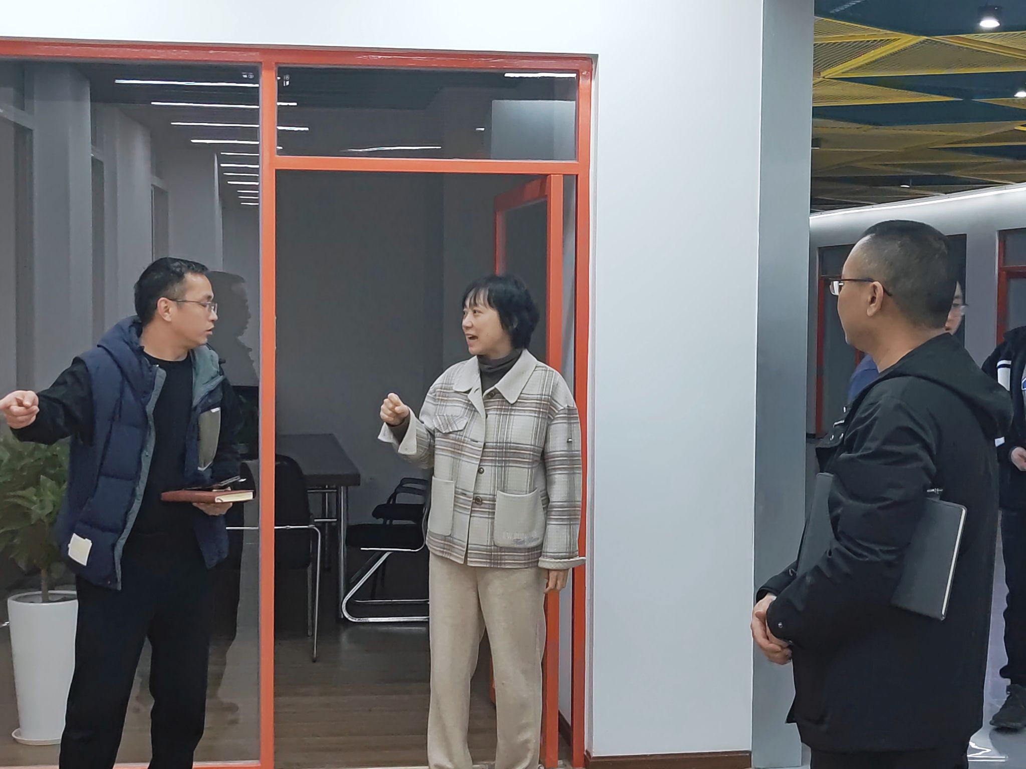 国资处处长舒勇提出要高度重视孵化园的监控设施和消防设施的配置,紧接着详细问询了目前孵化园二期软装等情况并表示会全力支持孵化园室内布置的建设,同时从未来孵化园发展的角度提出了具有针对性的建议。